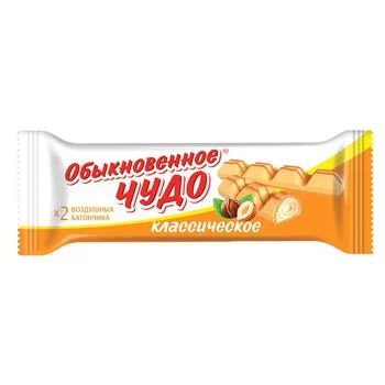 Батончик Славянка Обыкновенное чудо классическое – это два воздушных вафельных батончика, покрытых молочной глазурью, с оригинальной молочно-кремовой начинкой.