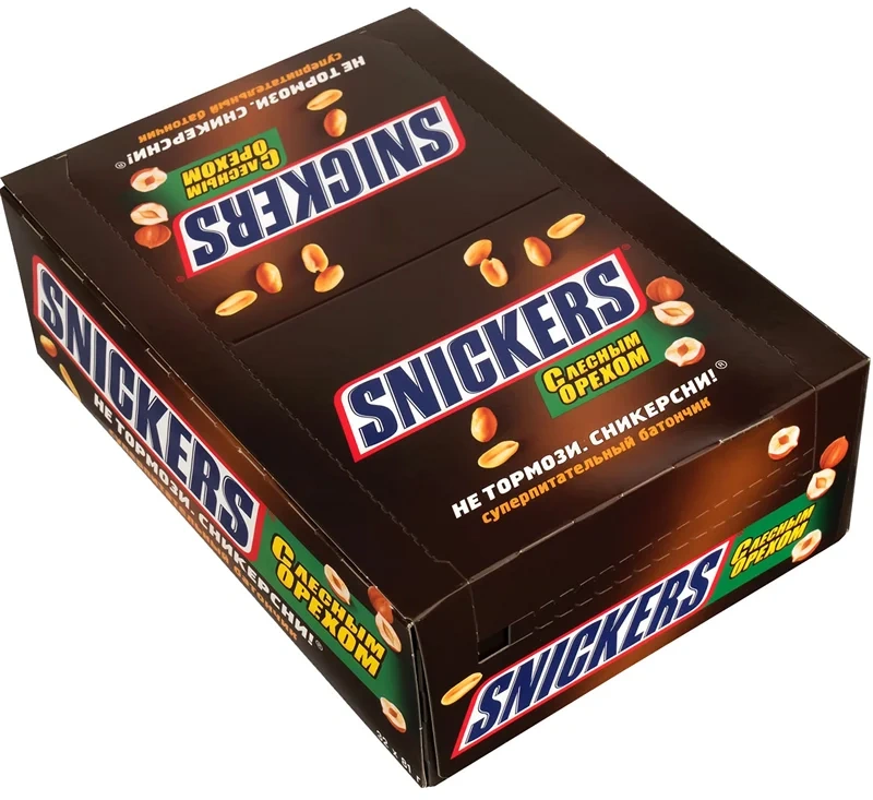 Потрясающе вкусный шоколадный батончик Snickers с арахисом, фундуком, нугой и карамелью, покрытый нежным молочным шоколадом. Сладость, которую можно взять с собой в дорогу на любой случай, когда нужно вкусно зарядиться энергией. Идеален вместе с горячими напитками или под просмотр хорошего фильма. Не содержит красителей и консервантов.