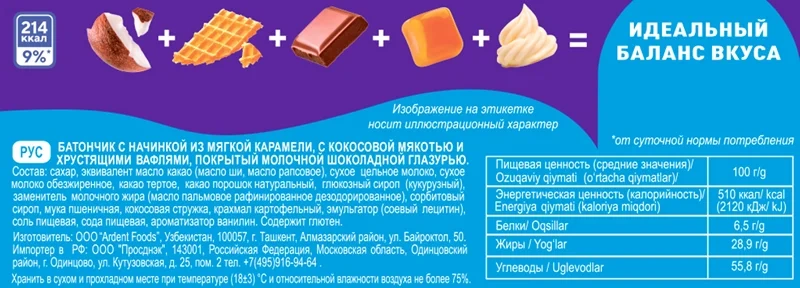 Шоколадный батончик Strobar изготовлен из молочного шоколада с добавлением кокосового крема, вафель и мягкой карамели. Вкус начинки – кокосовый и карамельный, что делает его уникальным и запоминающимся.
