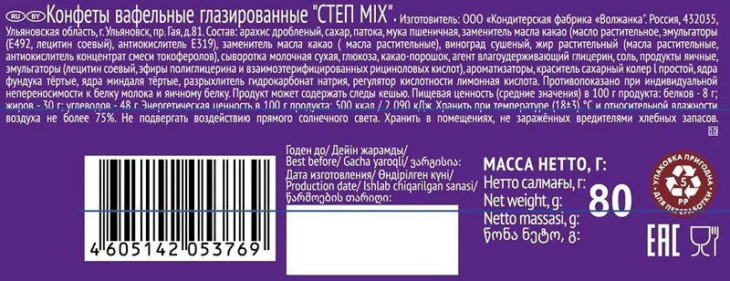 вафельная; карамельная; ореховая