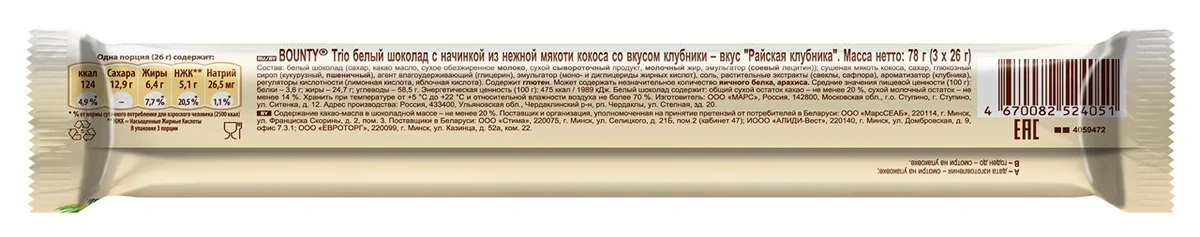 Шоколадный батончик Strobar изготовлен из молочного шоколада с добавлением кокосового крема, вафель и мягкой карамели. Вкус начинки – кокосовый и карамельный, что делает его уникальным и запоминающимся.
