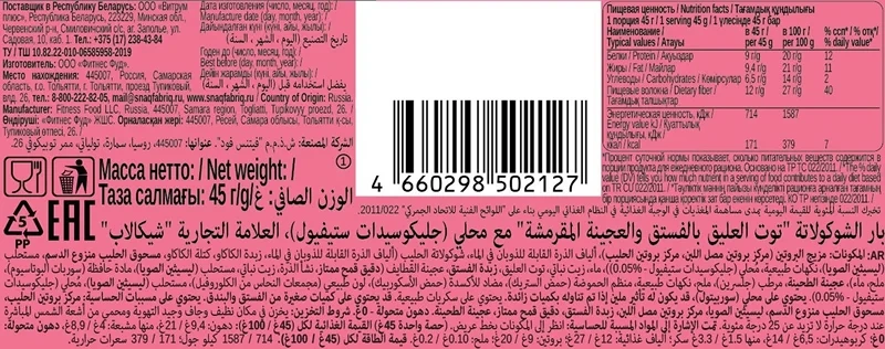 Продукция изготовлена из натуральных ингредиентов без добавления сахара. Полезное и аппетитное лакомство, которое помогает быстро утолить голод и пополнить запасы энергии. Может использоваться в качестве десерта с чаем или кофе, а также для перекуса во время прогулки или долгой поездки.
