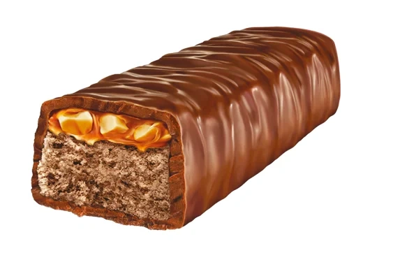 Батончик с карамелью и нугой в молочном шоколаде. Вкусный батончик с карамелью и нугой. Идеальное дополнение к горячему напитку, чтобы восстановить силы в течении дня.