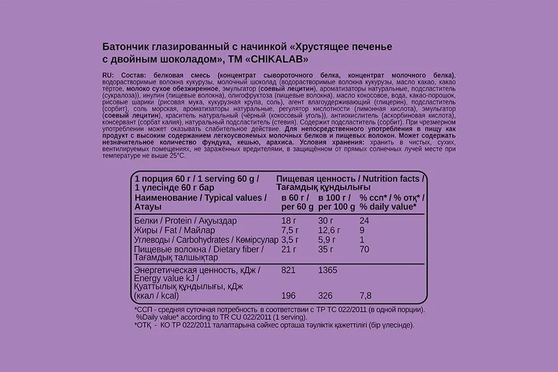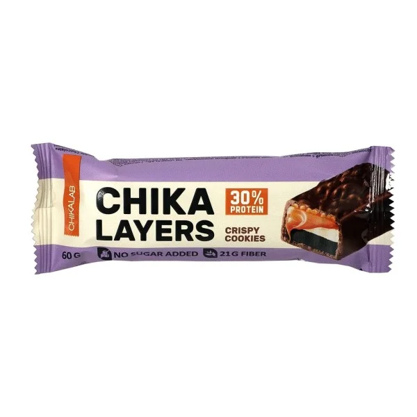 Протеиновый батончик Chikalab Chika Layers хрустящее печенье с двойным шоколадом, 60г