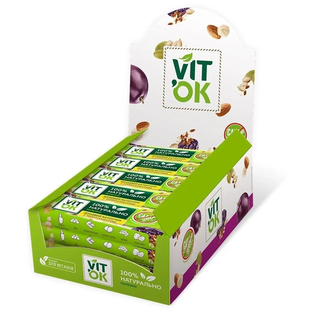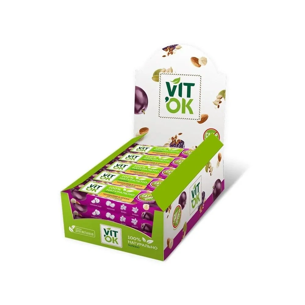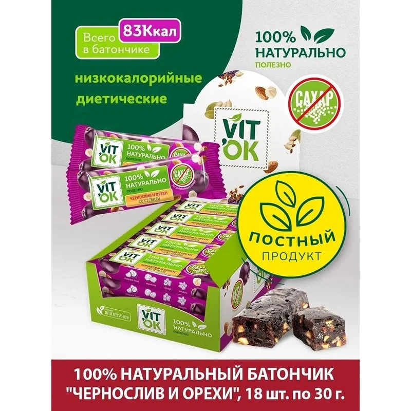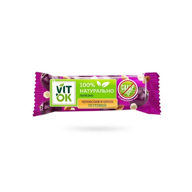 Батончик фруктово-ореховый Виток чернослив-орехи, со стевией, 30г
