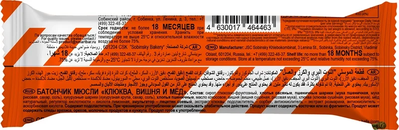 Батончик-мюсли Must Have с клюквой вишней и медом, 25г