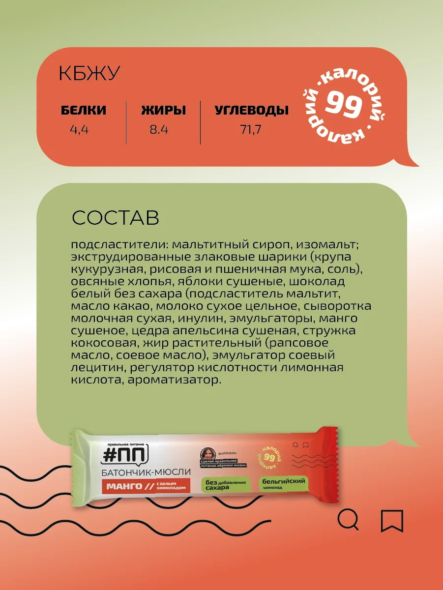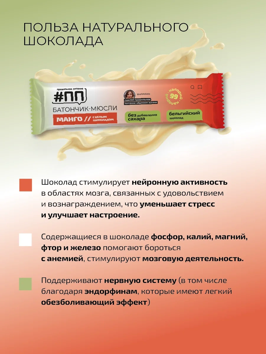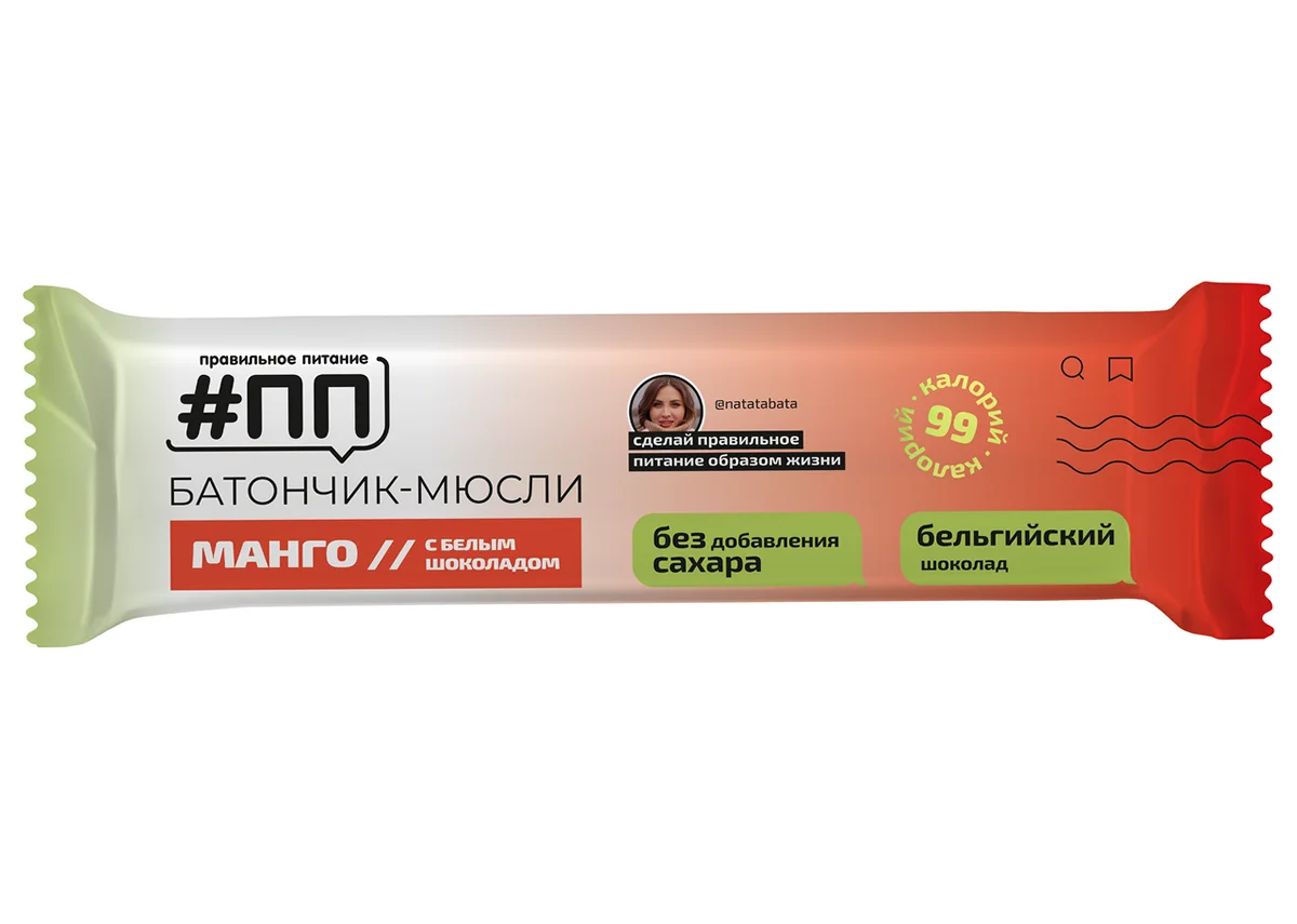 Батончик-мюсли ПП Манго-белый шоколад без сахара, 30г