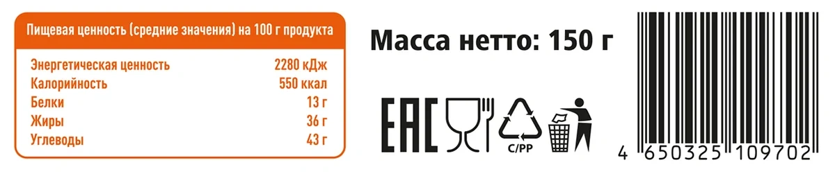 Батончик фруктово-ореховый кокос-воздушный рис, 30г