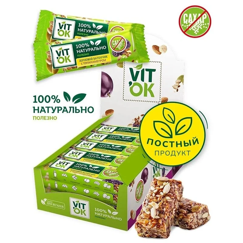 Батончик фруктово-ореховый Виток зерновой, с топинамбуром, 30г