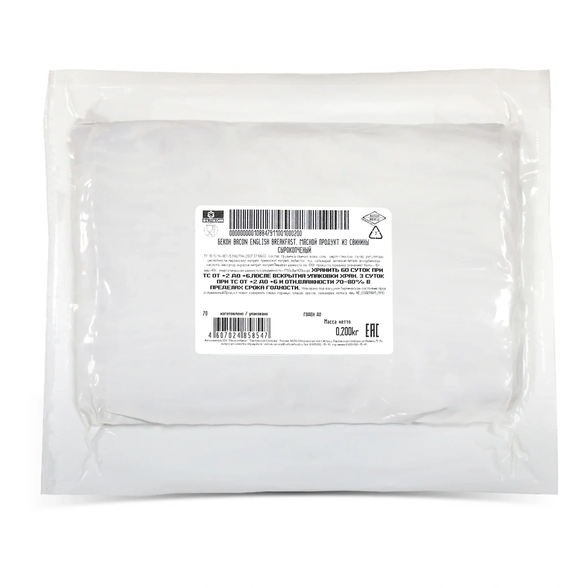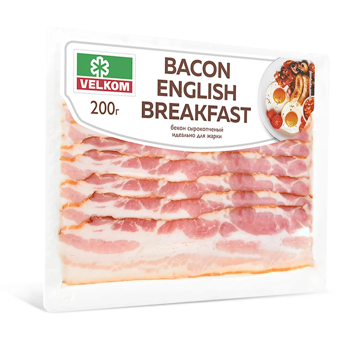 Бекон Велком English breakfast сырокопченый 200 г может стать аппетитным дополнением к разнообразным блюдам. Для его изготовления используется свежая свиная грудинка, которая сдабривается специями и коптится по особой технологии. Благодаря этому бекон отличается приятным, в меру соленым вкусом и тонким ароматом копчения. Он хорошо подходит для приготовления разнообразных сэндвичей, омлета, яичницы. Продукт хорошо сочетается с картофелем. Также его можно использовать для изготовления пасты карбонары. Бекон прекрасно поддается жарке и запеканию.