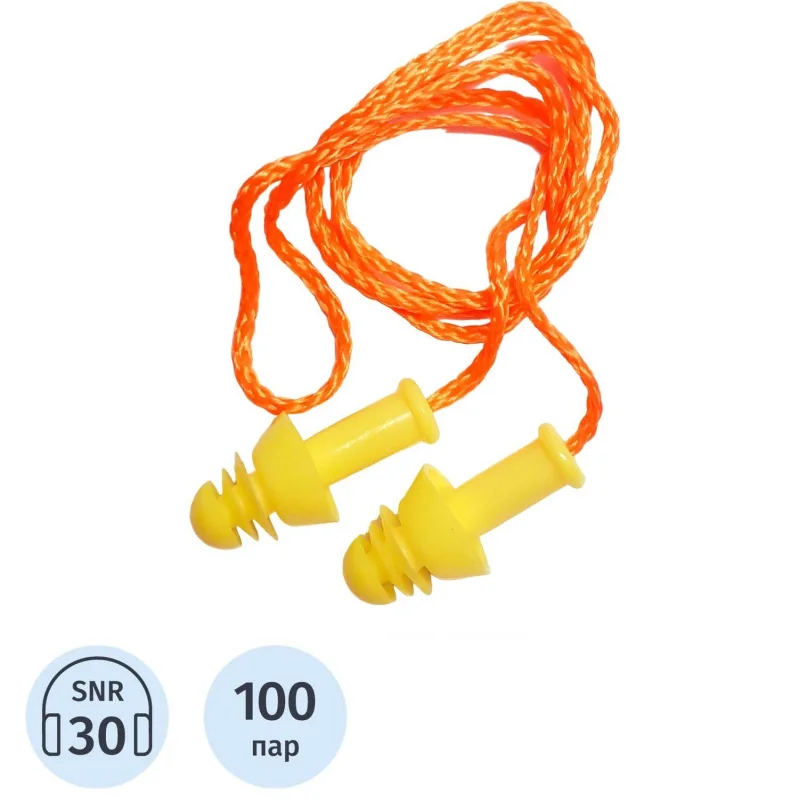 Беруши многоразовые Ампаро Каскад со шнурком, 100 пар