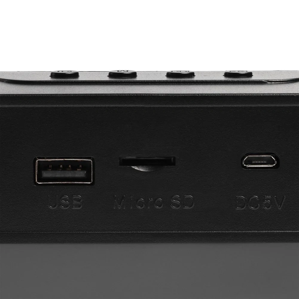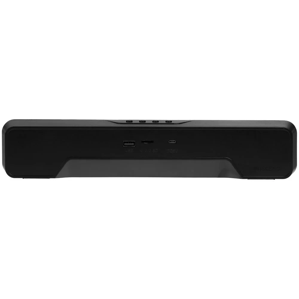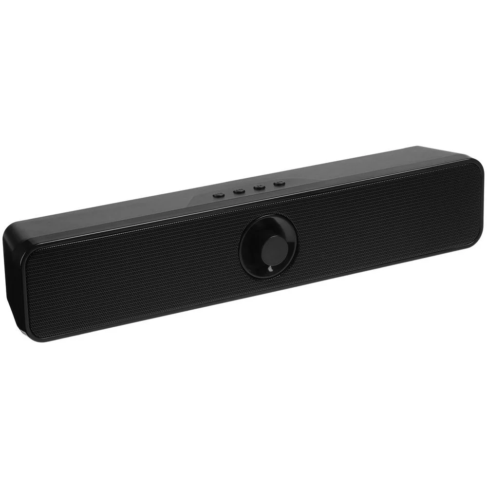 Мощная стереофоническая колонка с удобным управлением: включение и выключение осуществляется регулятором громкости. Поддерживает не только беспроводное воспроизведение музыки через протокол Bluetooth, но и проигрывает файлы в формате mp3 с флешки или карты microSD. Встроенное FM-радио еще больше расширяет возможности колонки Uniscend Audeamus .Версия Bluetooth: 4.2Диапазон частот: 110 Гц – 17 000 Гц Выходная мощность, номинальная: 2х3 ВтUSB-порт для флешки, слот для карты microSD Проигрывает mp3-файлы с битрейтом от 128 до 320 кб/секМаксимальная емкость флешки или карты microSD: 32 ГбFM стерео: 87,5–108 мГц (антенной является кабель Micro USB, не подключенный к зарядному устройству)Емкость встроенного аккумулятора: 1200 мАчВремя воспроизведения: не менее 4 часовВремя заряда: не более 3 часовМикрофон для громкой связиРекомендуемые параметры зарядного устройства: 5 В, 1–2 АКабель Micro USB (антенна FM) в комплекте Цвет: черный. Размер изделия: 31х5,5х6 см; упаковка: 33,5х6,5х6,5 см. Материал: пластик, алюминий. Возможные виды нанесения: УФ-печать; Тампопечать;