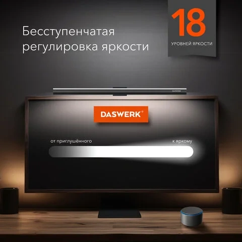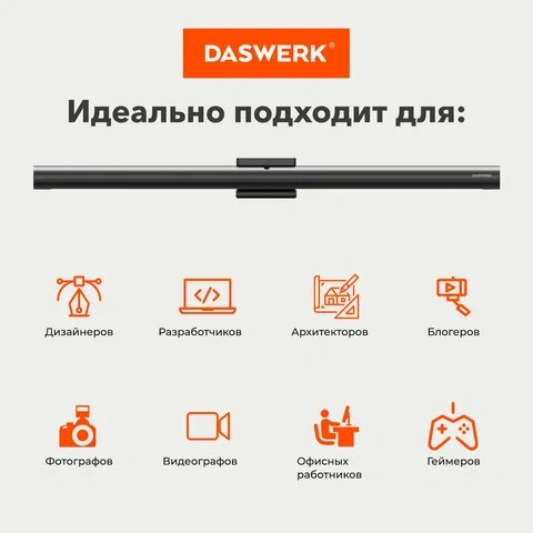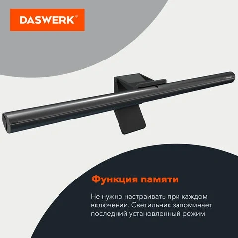 Бестеневая лампа светильник для монитора, ноутбука многорежимная, LED, 5 Вт, черный, DASWERK, 238330