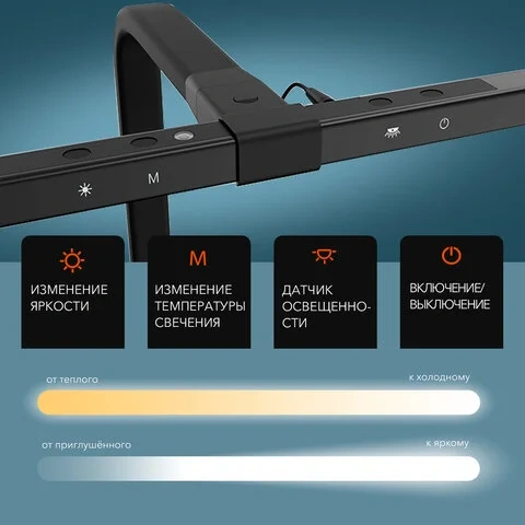 120 ярких светодиодов гарантируют комфортное освещение со световым потоком 1000 Лм. Светильник дает возможность подобрать оптимальный режим освещения. Он имеет бесступенчатую регулировку яркости и цветовой температуры. Благодаря встроенному датчику освещённости светильник может подстраиваться под окружающие условия.