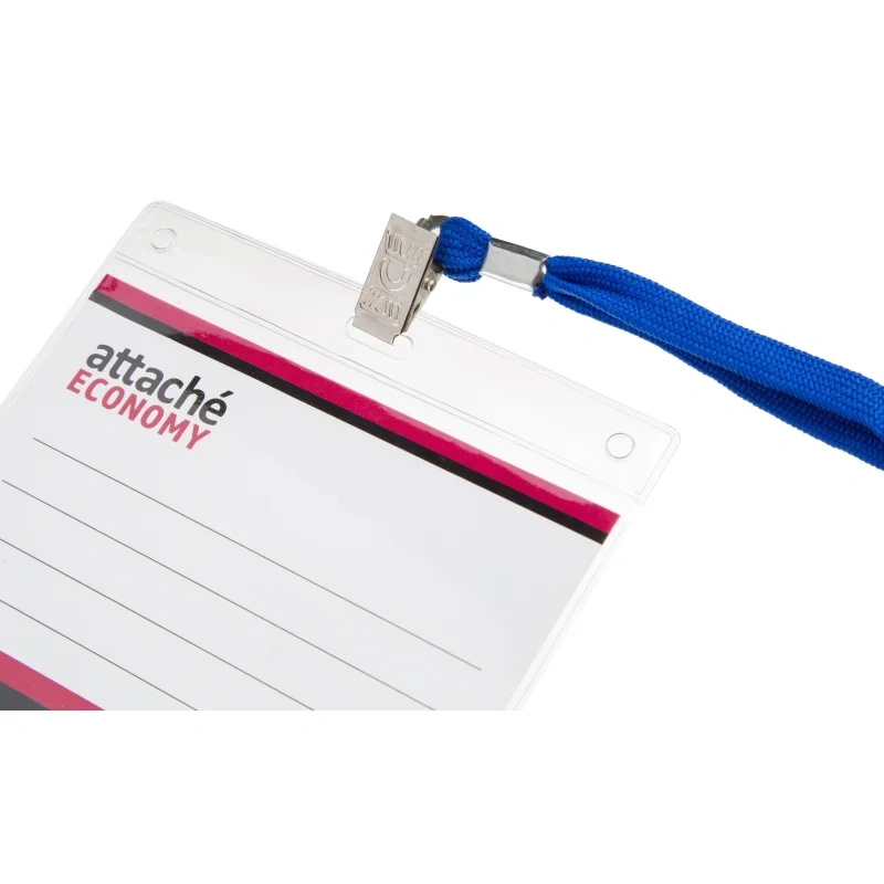 Бейдж Attache (Attache Economy) горизонтальный 108×126 мм с зажимом и синей тесьмой (5 штук в упаковке, размер вкладыша: 90×120 мм)
