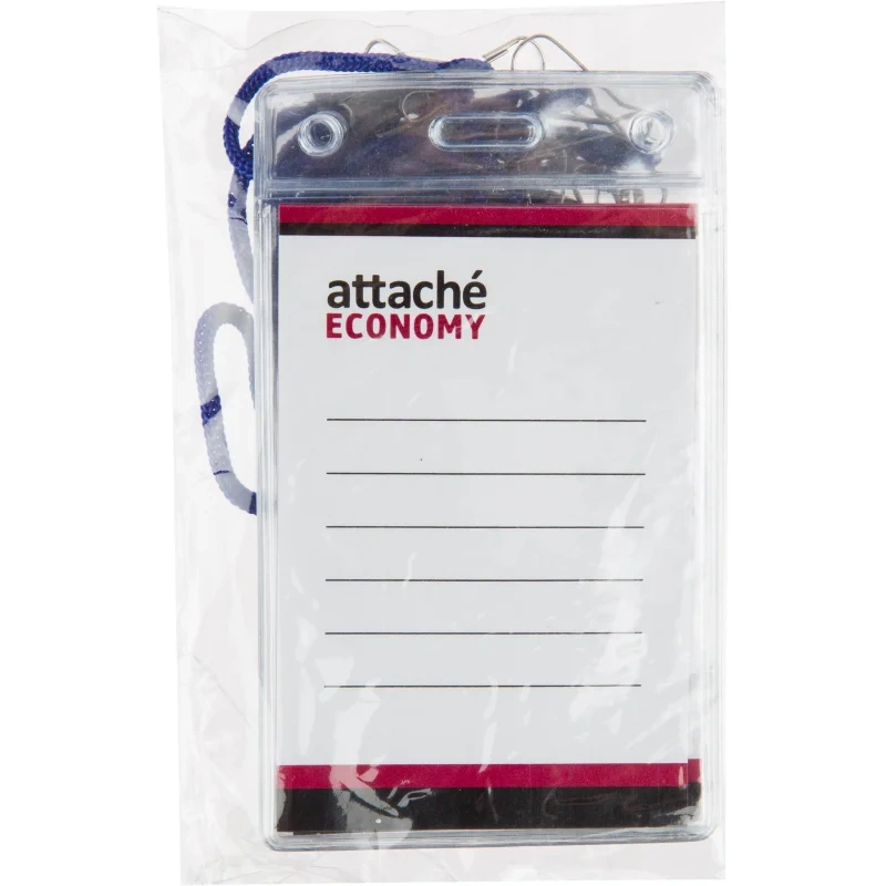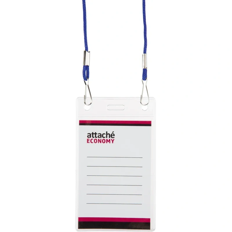 Бейдж Attache Economy 108x66 150мкм,шнур.2заж 45см син, вкладыш90x60 5шт/уп