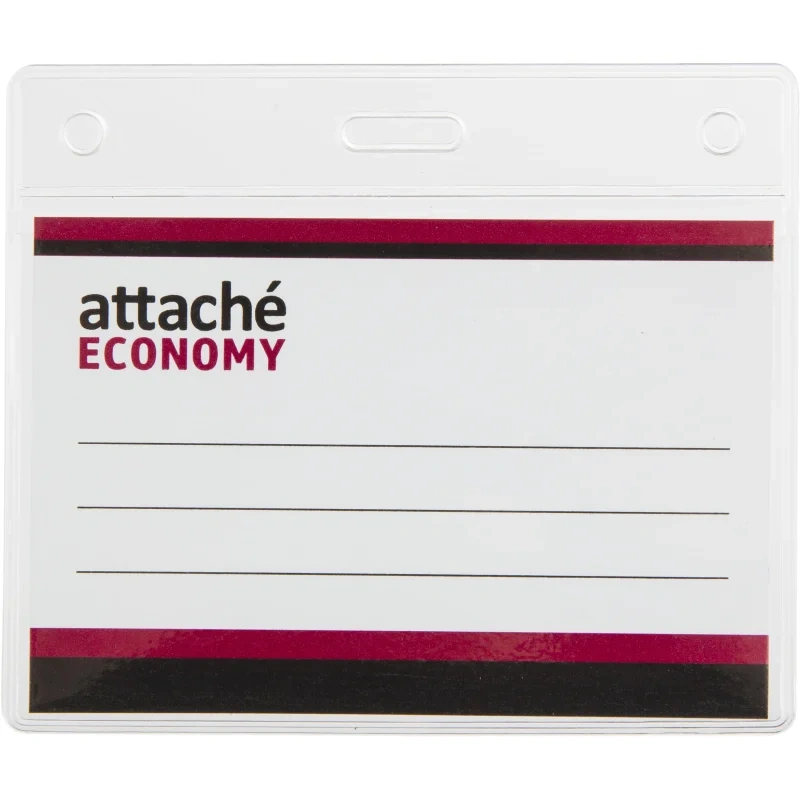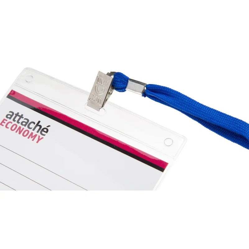 Бейдж Attache (Attache Economy) горизонтальный 78×96 мм с зажимом и синей тесьмой (5 штук в упаковке, размер вкладыша 60×90 мм)