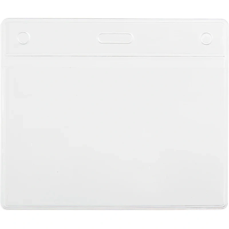 Бейдж горизонтальный, изготовлен из прозрачного ПВХ. Размер бейджа — 78×96 мм, размер вкладыша — 60×90 мм. Поставляется с вкладышем. Крепление изделия осуществляется при помощи металлического зажима на тесьме. Ширина тесьмы — 10 мм, длина — 45 см. Бейдж подходит для ношения именных карточек и пропусков на семинарах, конференциях, выставках и других мероприятиях. Поставляется по 5 штук в упаковке.
