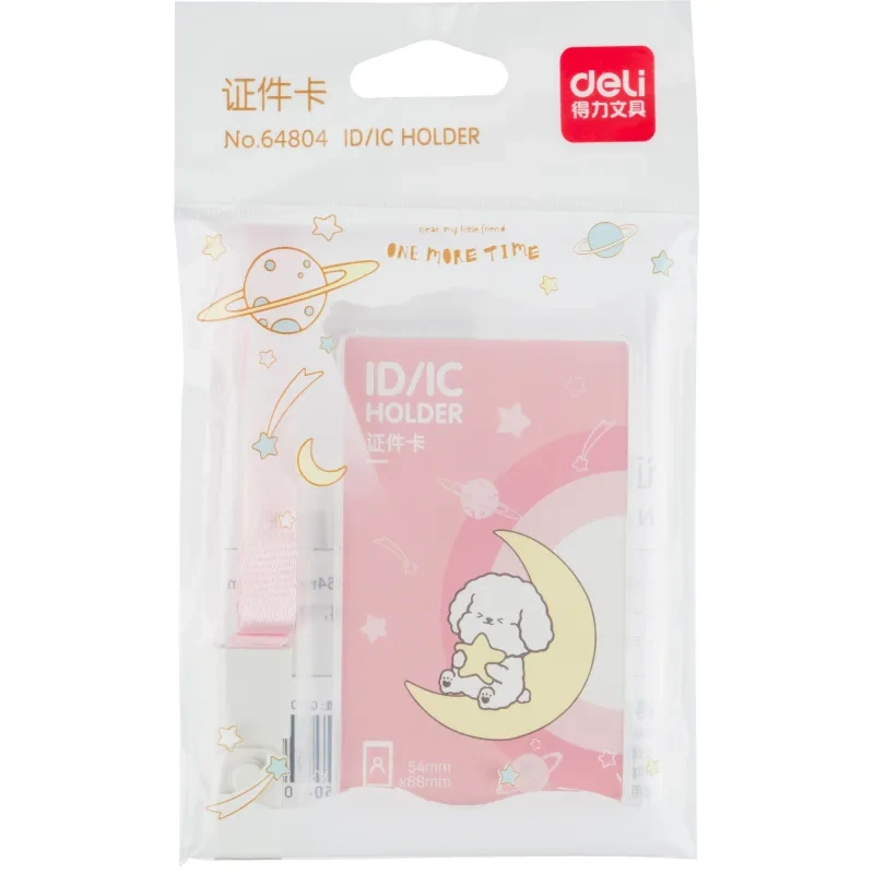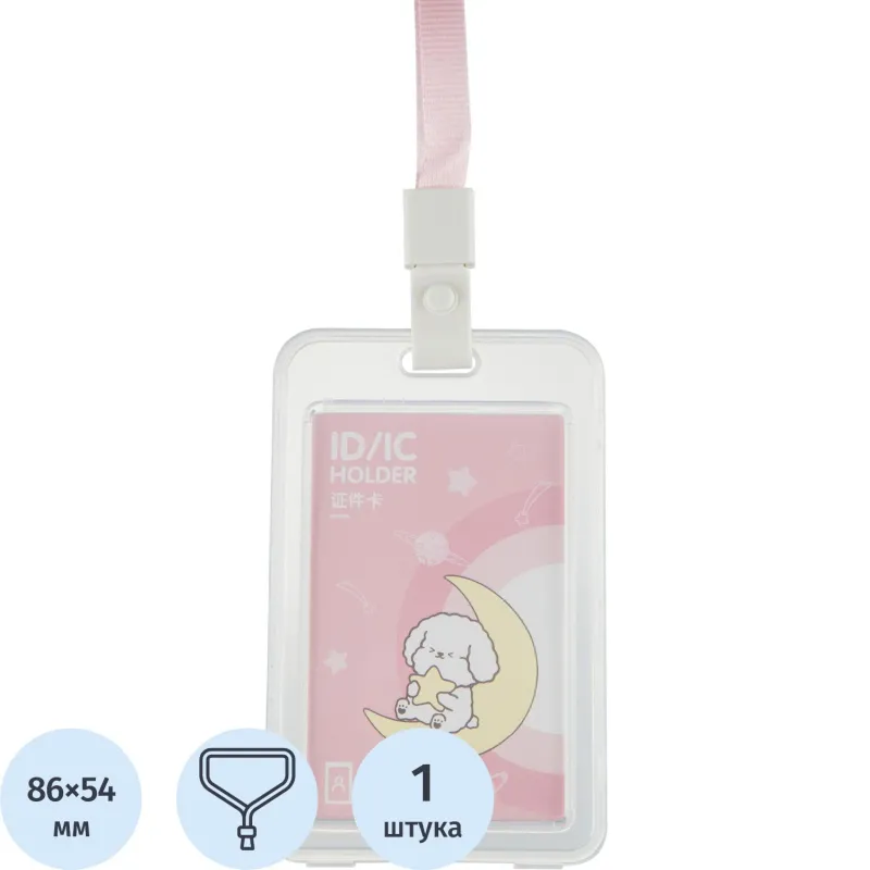 Бейдж Deli 64804 вертик.,на шнурке с клипом., вкладыш: 54x86мм,розовый,1 шт