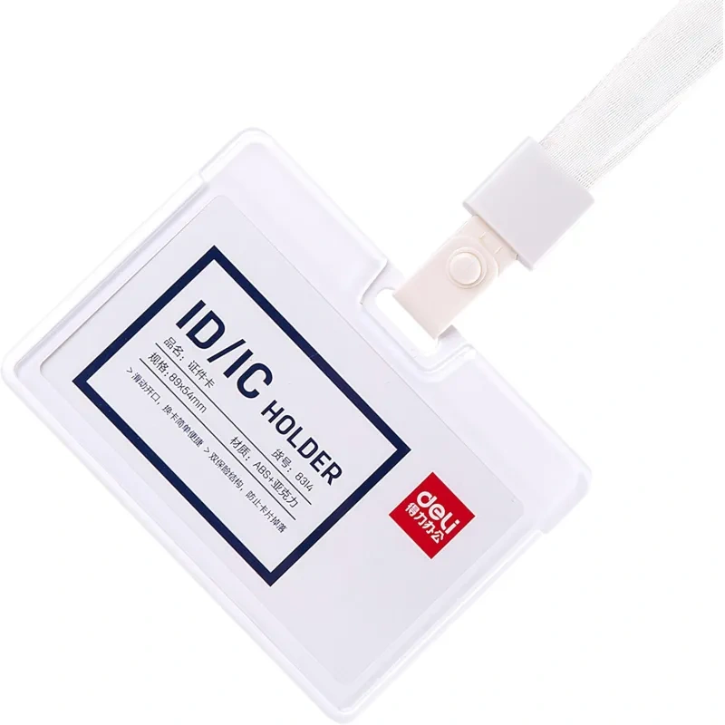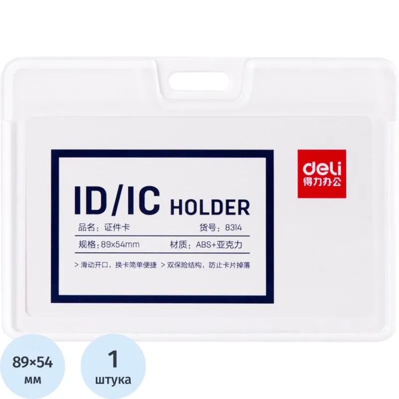 Бейдж Deli 8314 горизонт. без держат., вкладыш: 89x54мм, пластик, белый,1шт