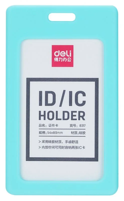 Бейдж для пропуска Deli 8317 l-blue 54х89мм вертикальный без крепления силикон голубой