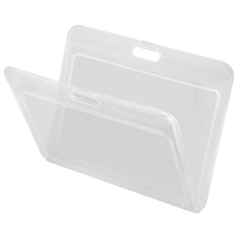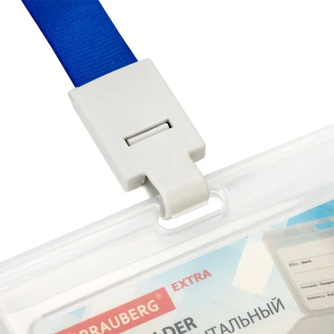 Бейдж горизонтальный (54х85 мм) на 2 карты, с лентой 45 см, ЗАЩИТА ОТ ВЛАГИ И ПЫЛИ, BRAUBERG EXTRA,