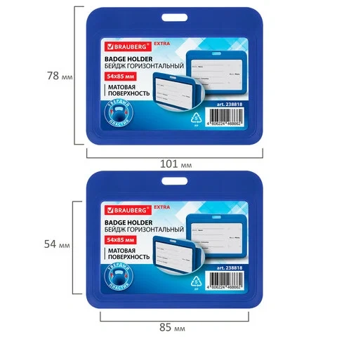 Бейдж горизонтальный (54х85 мм), синий, МАТОВАЯ ПОВЕРХНОСТЬ, BRAUBERG EXTRA, 238818