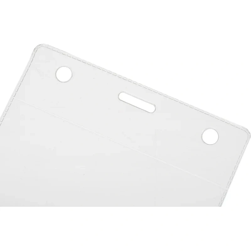 Бейдж изготовлен из прозрачного ПВХ. Подходит для закрепления на держателе с рулеткой. Предназначен для ношения именных карточек, пропусков. Поставляется в упаковке в количестве 10 штук.