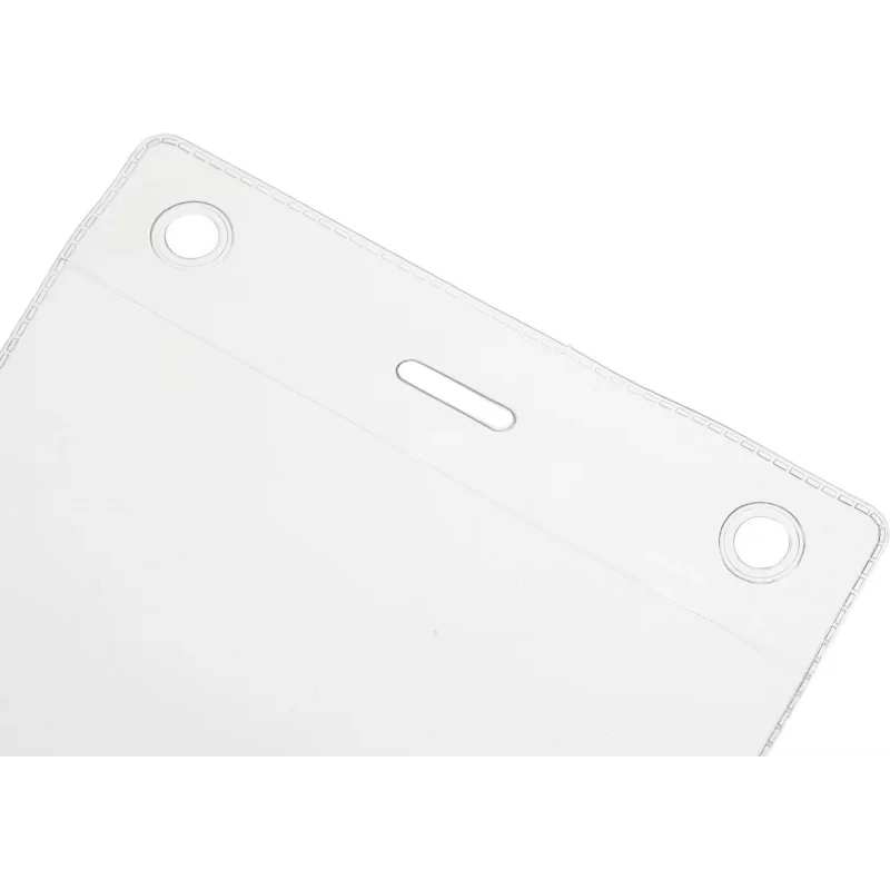 Бейдж изготовлен из прозрачного ПВХ. Подходит для закрепления на держателе с рулеткой. Предназначен для ношения именных карточек, пропусков. Поставляется в упаковке в количестве 10 штук.