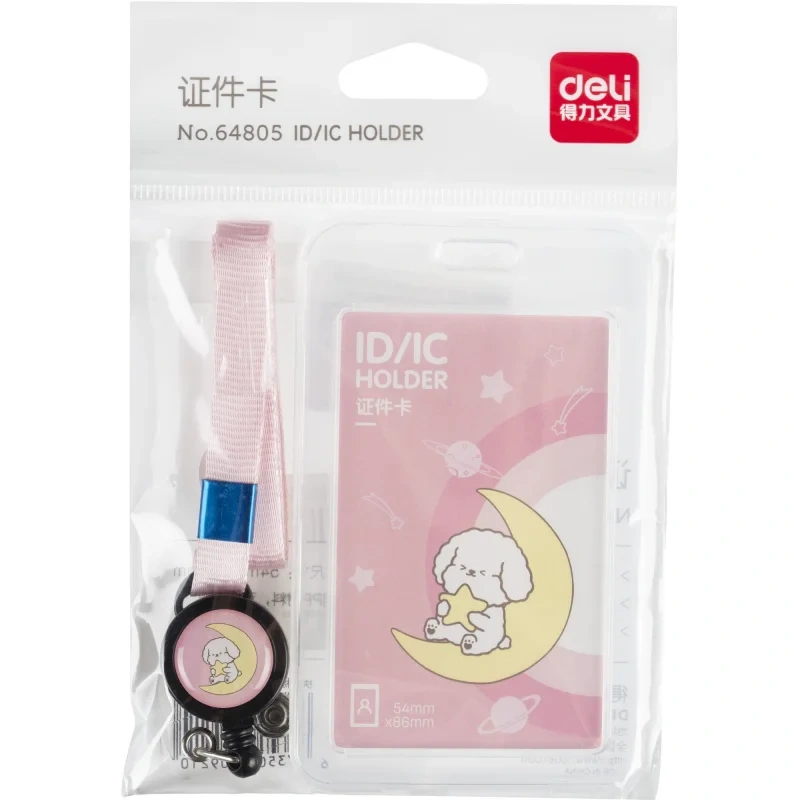 Бейдж на рулетке Deli 54x86мм, розовый, вертикальный