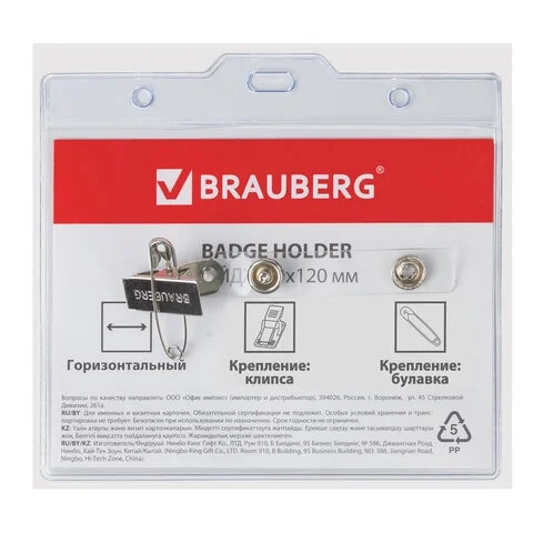 Бейдж на зажиме с булавкой Brauberg 90х120мм