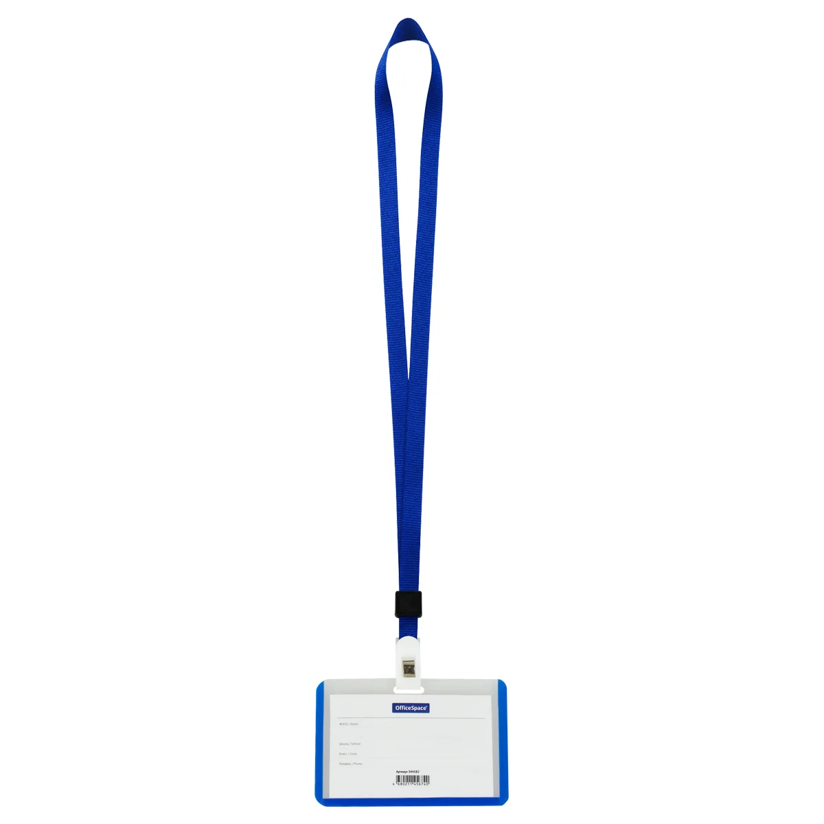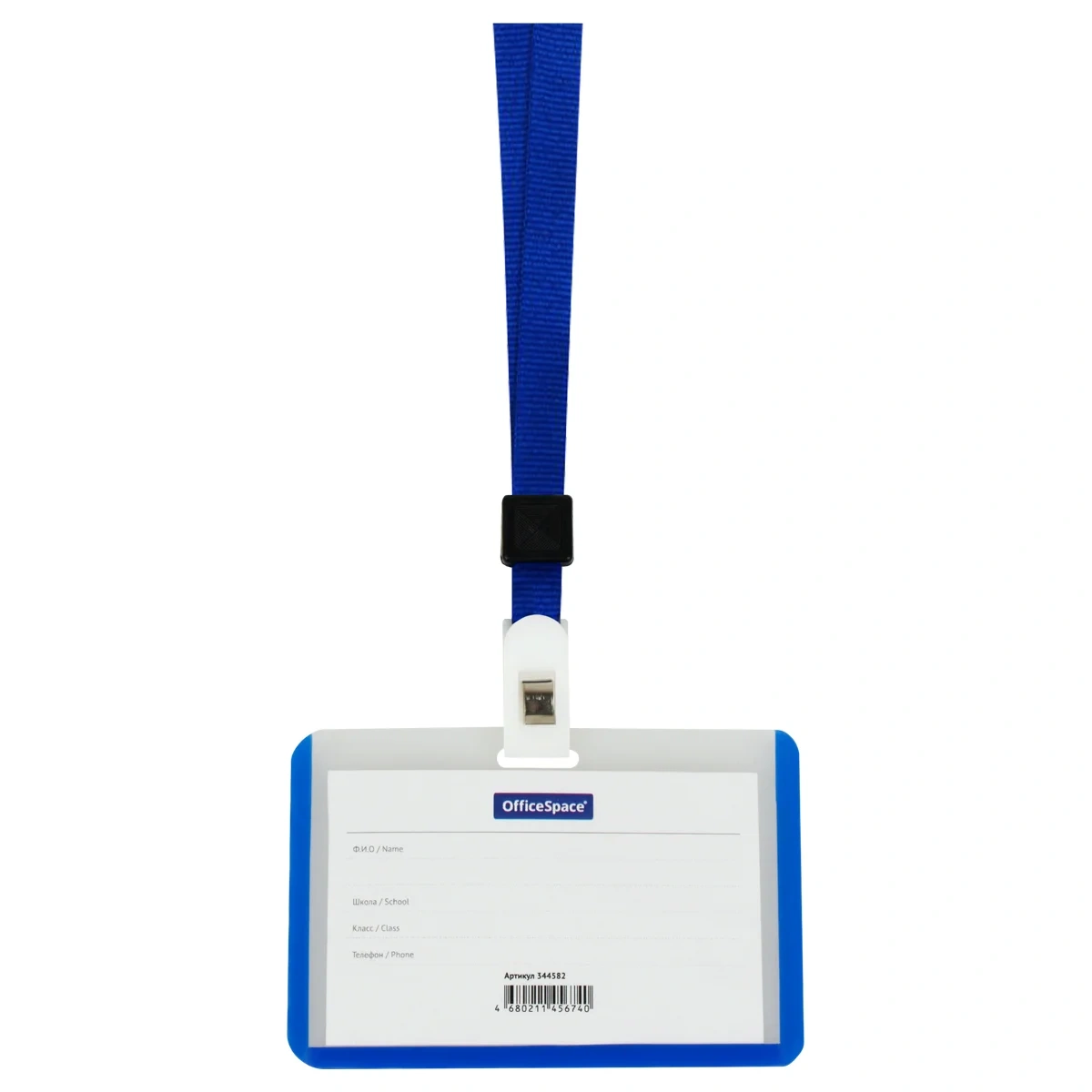 Бейдж с тесьмой Officespace горизонтальный 55х90мм, синий, школьный, с клипсой на синей ленте