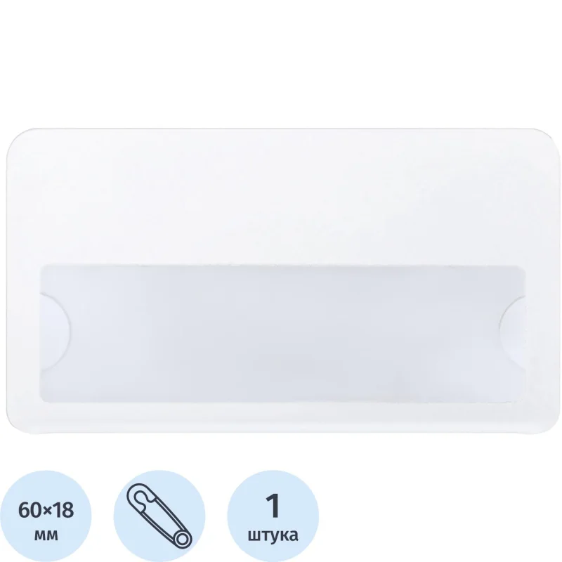 Бейдж с окном для сменной информации, булавка, размер70x40 мм с загибушкой