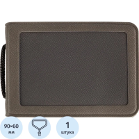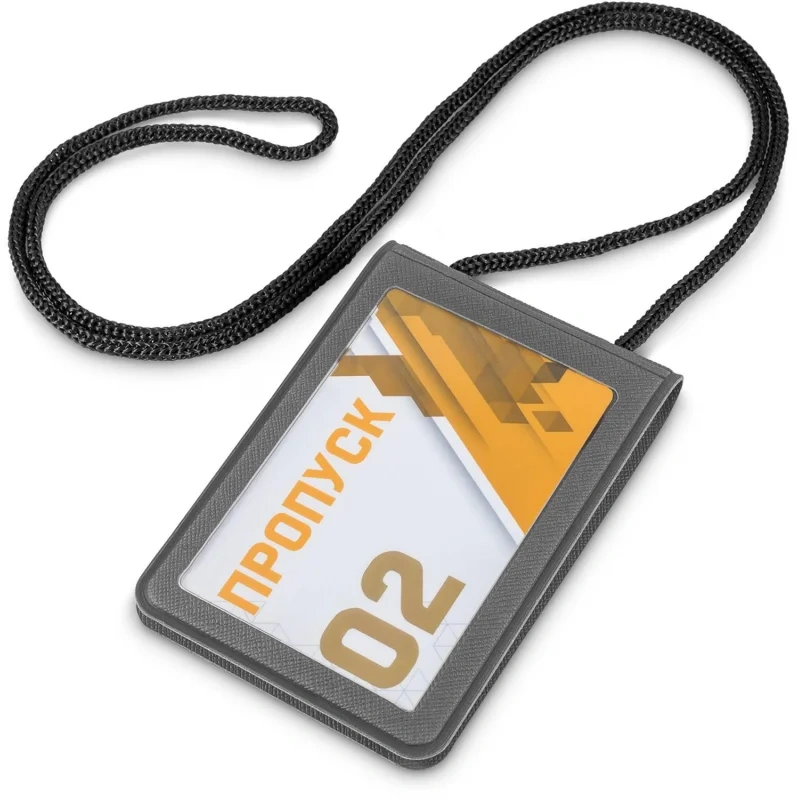 Бейдж с тесьмой 60х90мм, графит, экокожа, вертикальный