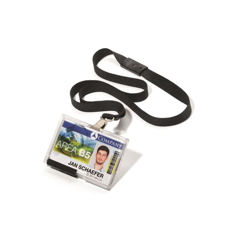 Бейдж с тесьмой Durable 91х60мм, черная тесьма, 10шт/уп