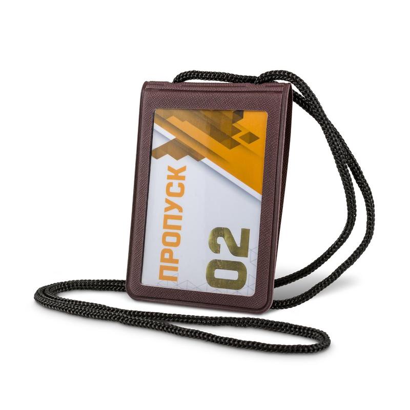 Бейдж вертик. 54х90, коричн., кожзам, с держателем З