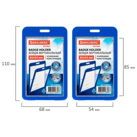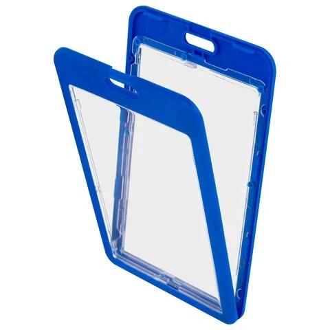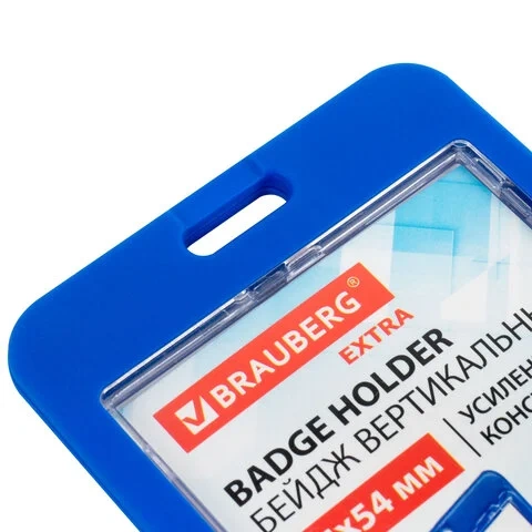 Бейдж вертикальный (85х54 мм), ДВУСТОРОННИЙ, cиний, ЗАЩИТА ОТ ВЛАГИ И ПЫЛИ, BRAUBERG EXTRA, 238808