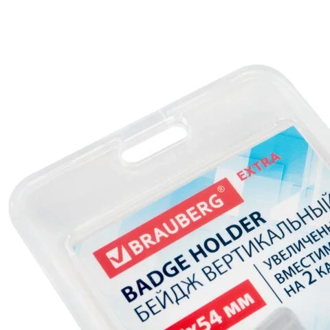Бейдж вертикальный (85х54 мм) на 2 карты, прозрачный, ЗАЩИТА ОТ ВЛАГИ И ПЫЛИ, BRAUBERG EXTRA, 238826
