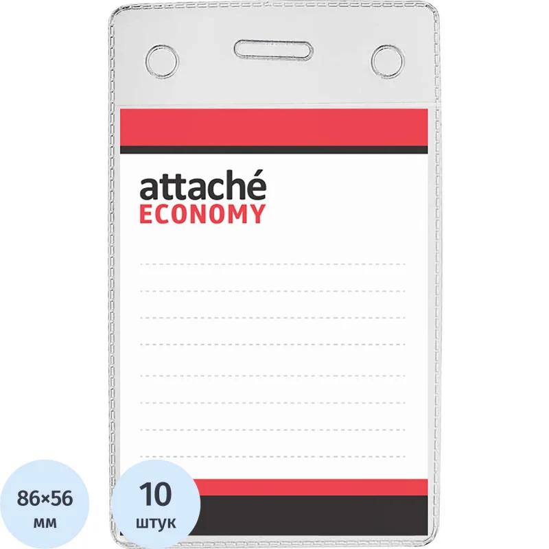 Бейдж Attache (Attache Economy) вертикальный мягкий 106×63 мм без держателя (10 штук в упаковке, размер вкладыша: 86×56)