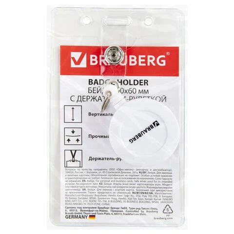 Отзывы о «Бейдж вертикальный для пропуска и ID-карт, СИЛИКОНОВЫЙ, 85х54 мм, шнурок 42 см, красный, BRAUBERG, 2»