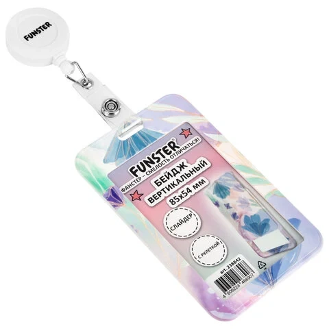 Бейдж вертикальный с 3D-печатью 'Pastel grade' (85х54 мм), с рулеткой, СЛАЙДЕР, FUNSTER (ФАНСТЕР), 2