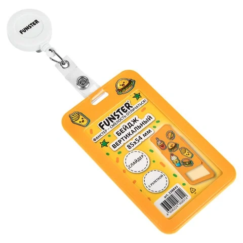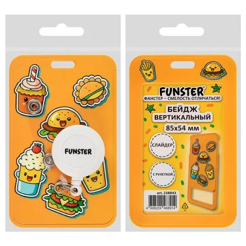 Бейдж вертикальный с 3D-печатью 'Street food' (85х54 мм), с рулеткой, СЛАЙДЕР, FUNSTER (ФАНСТЕР), 23