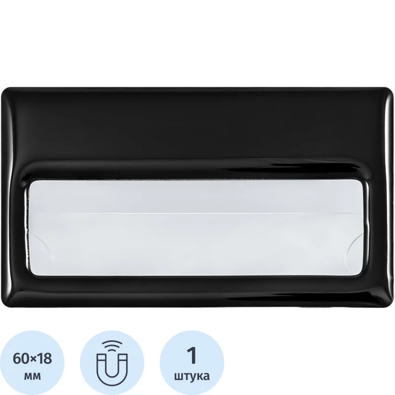 Бейдж с окном для сменной информации, размер 70x40 мм, черный, на магните