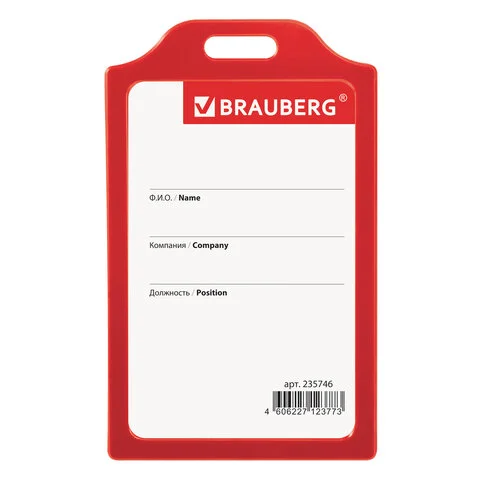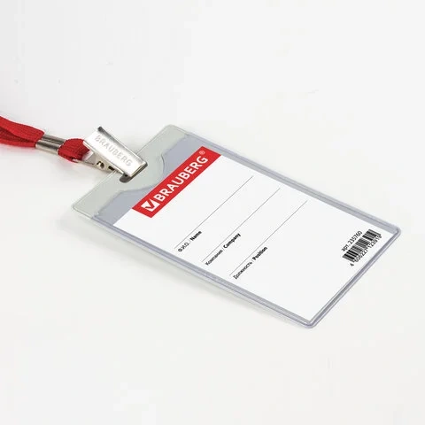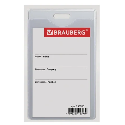 Бейдж на зажиме с булавкой Brauberg 57х90мм, 50шт/уп