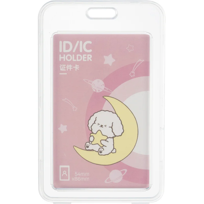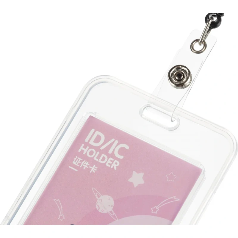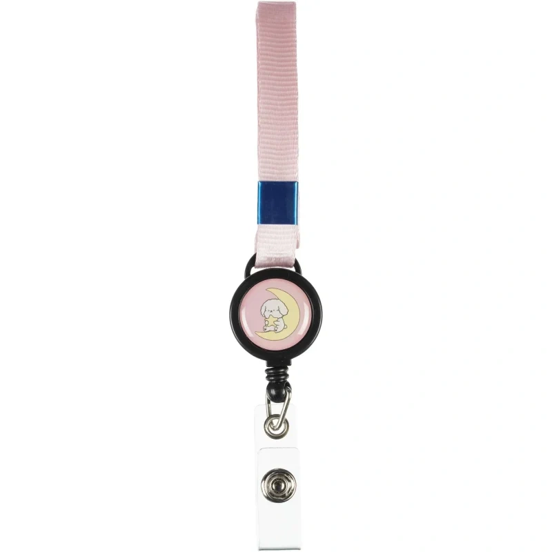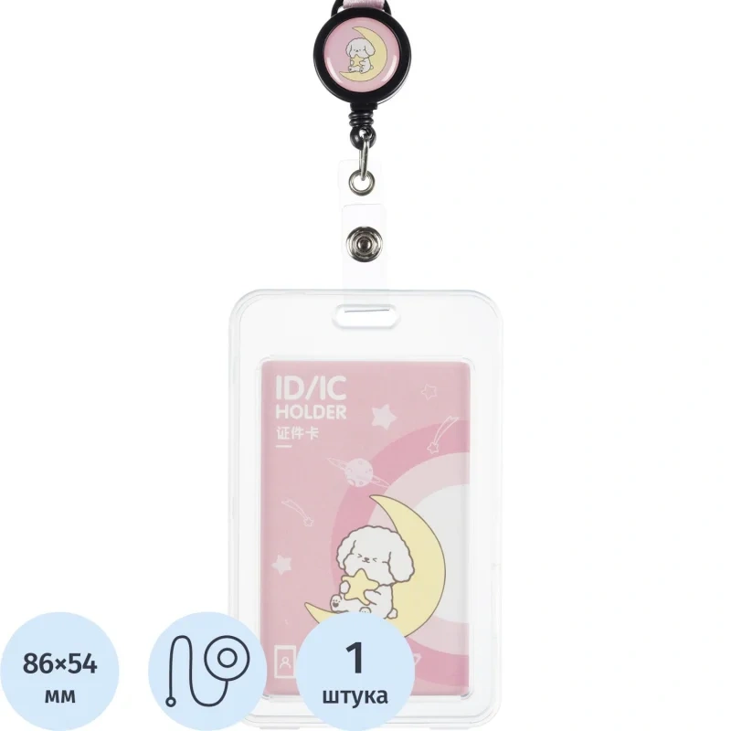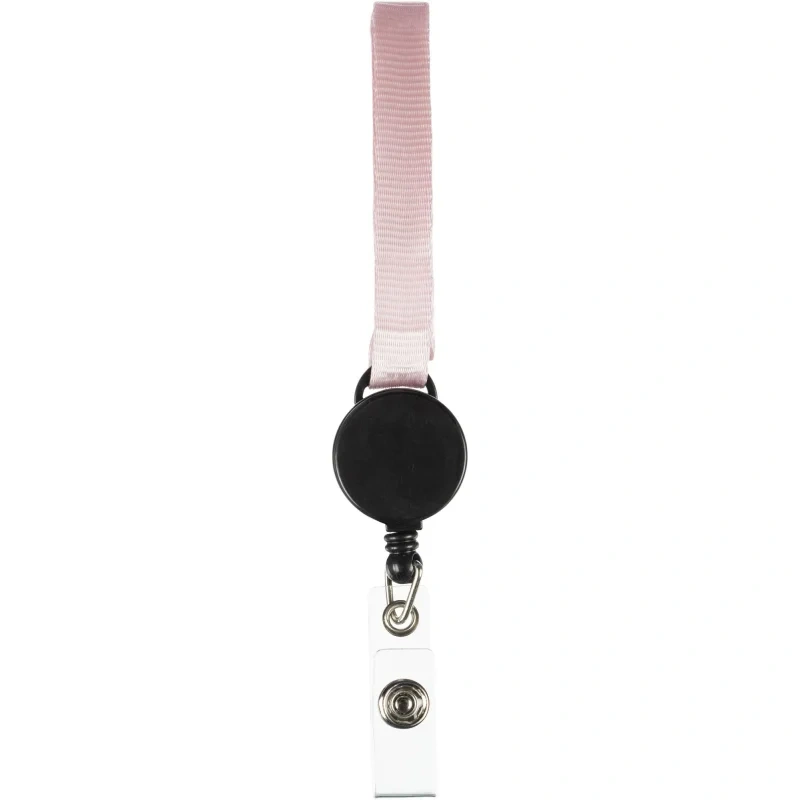 Бейдж на рулетке Deli 54x86мм, розовый, вертикальный