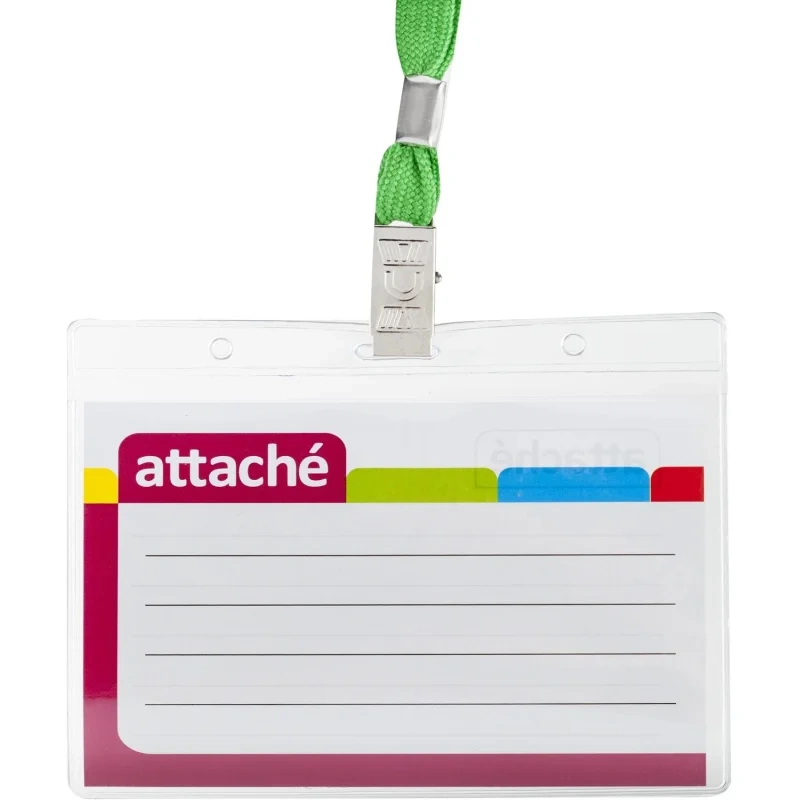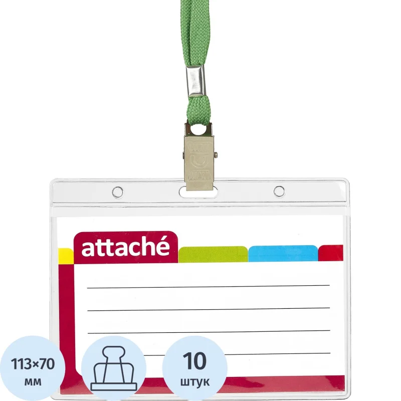 Бейдж Attache 120х87мм (113х70мм)гориз.,металл зажим,тесьма зелен. 10шт/уп