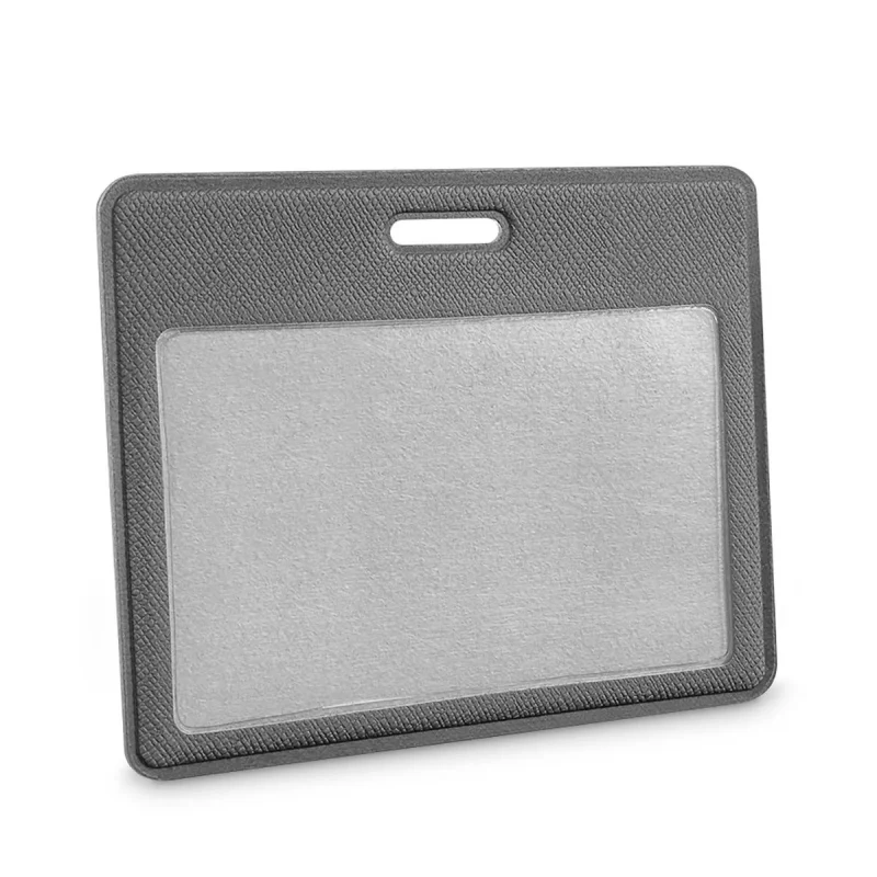 Бейдж без держателя 90х60мм, графит, экокожа, горизонтальный