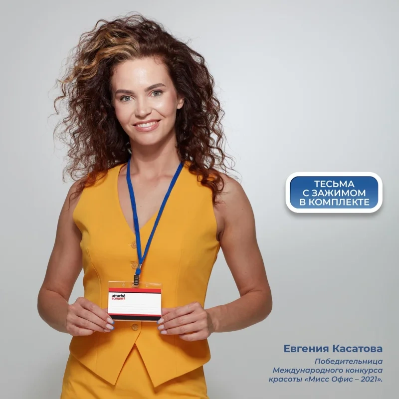 Бейдж Attache Economy 108x126 150мкм,шнур.2заж 45см син,вклад.90x120 5шт/уп