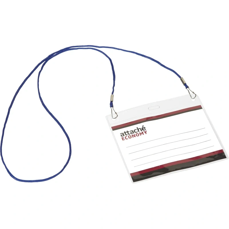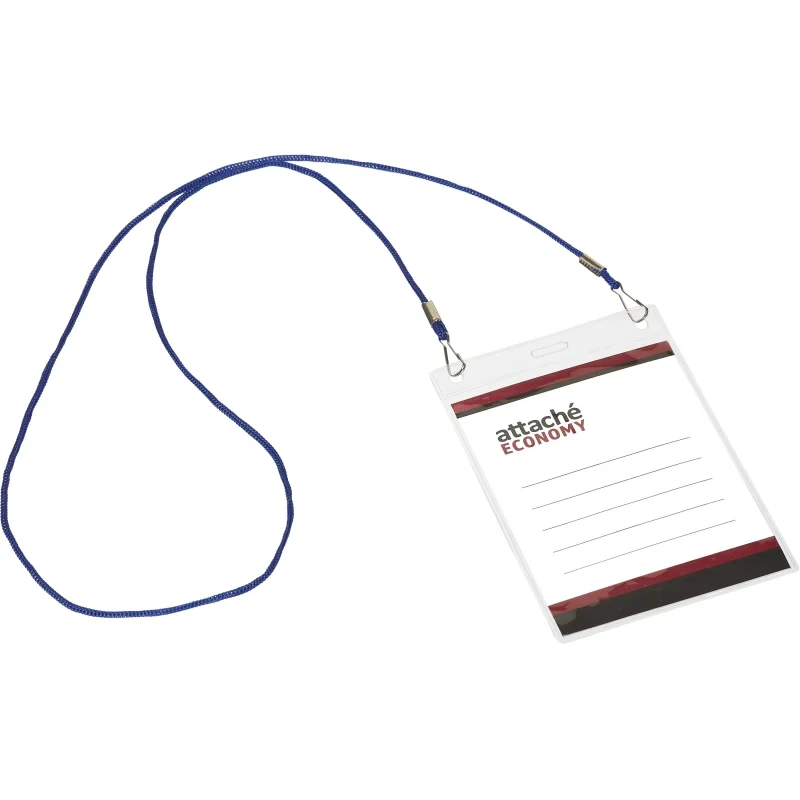 Бейдж Attache Economy 138x96 150мкм,шнур.2заж 45см син,вклад. 120x90 5шт/уп