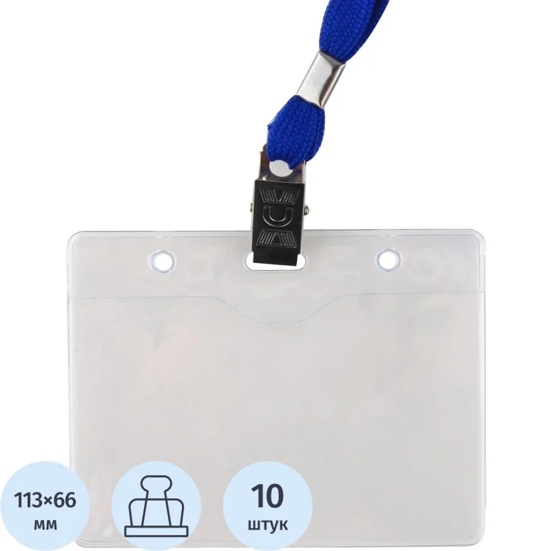 Бейдж Attache Economy 108x66 150мкм,шнур.2заж 45см син, вкладыш90x60 5шт/уп